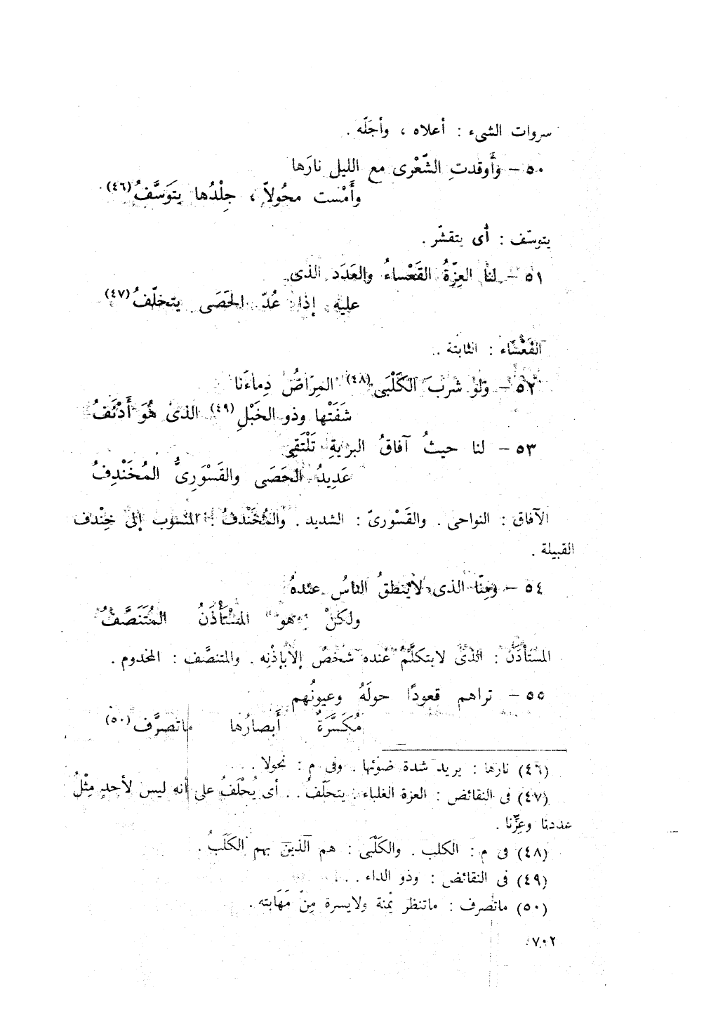 وَأَوْقَدَتِ الشِّعرى، مع اللل، نارَها، ... وَأَمْسَتْ مُحَولاً جَلْدُها يَتَوَسّفُ