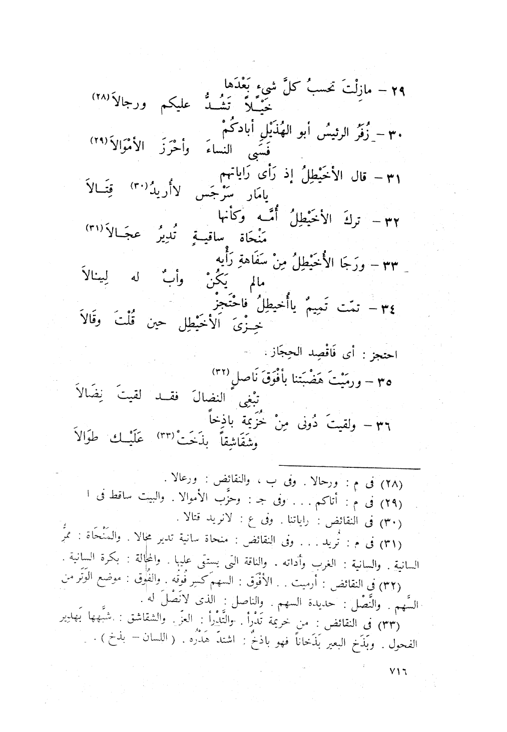 وَرَمَيْتَ هَضْبَتَنَا بِأَفْوَقَ ناصِلٍ، ... تَبْغي النّضال، فقد لَقِيتَ نِضالا