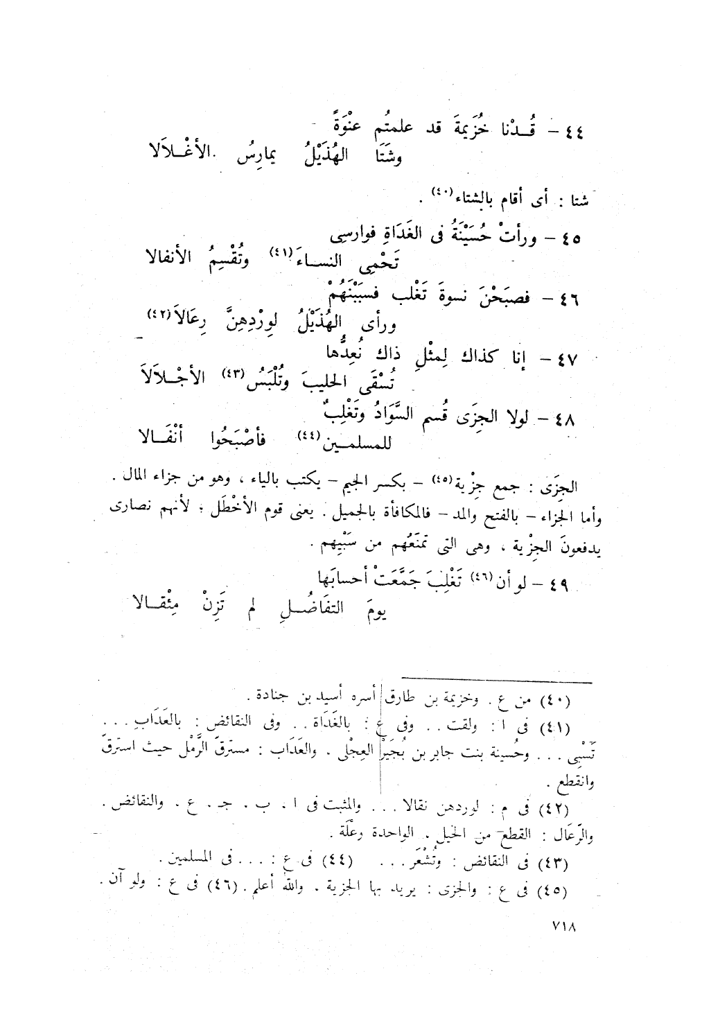 لولا الجزِى قُسِمَ السوادُ وَتَغلِبٌ ... للمُسلِمِينَ، فَأَصْبَحُوا أَنْفالا