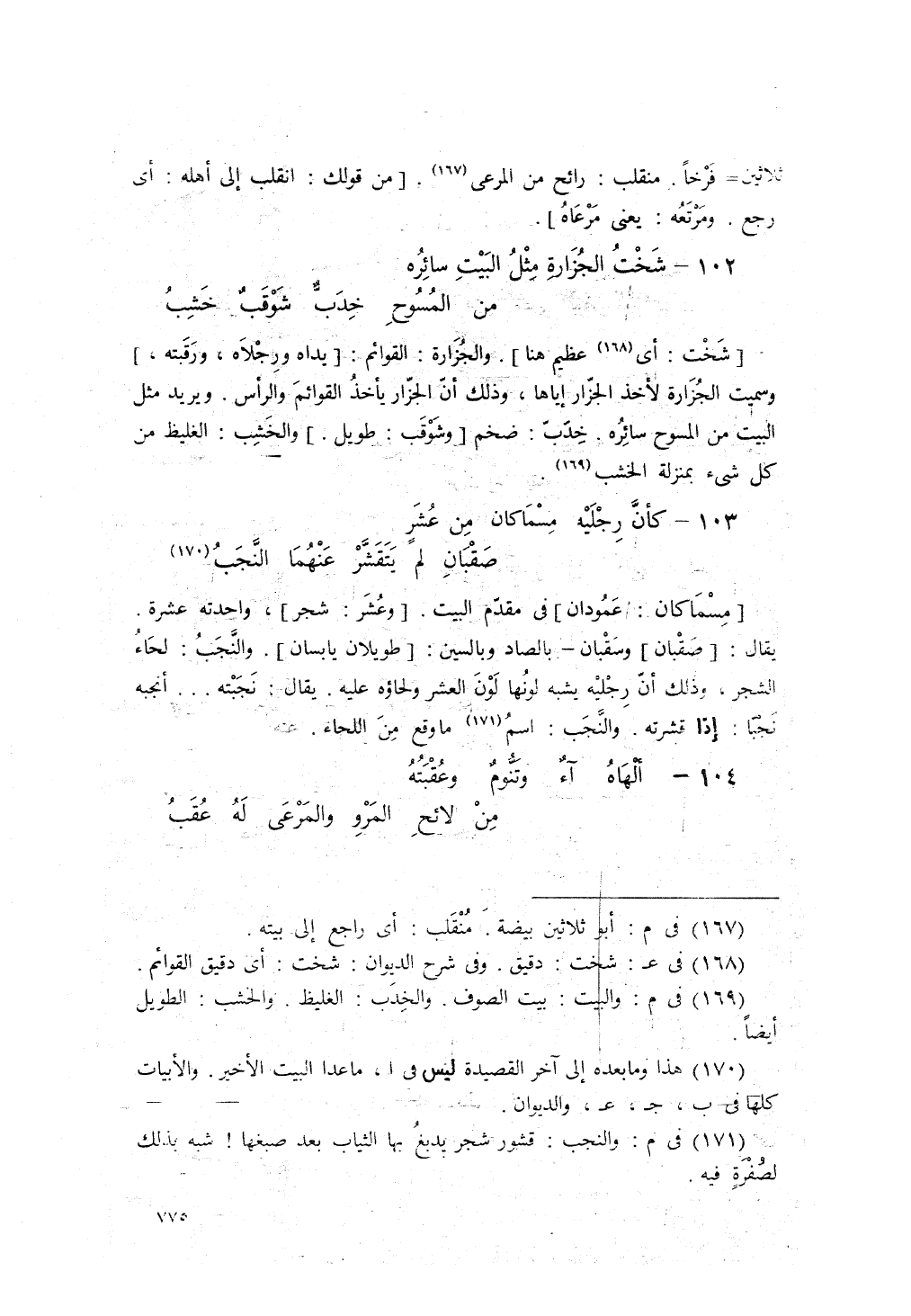 شَخْتُ الجُزارةِ مِثْلُ البيتِ سائرهُ، ... مِنْ المُسُوحِ خِدَبٌّ شَوْقَبٌ خَشِبُ
