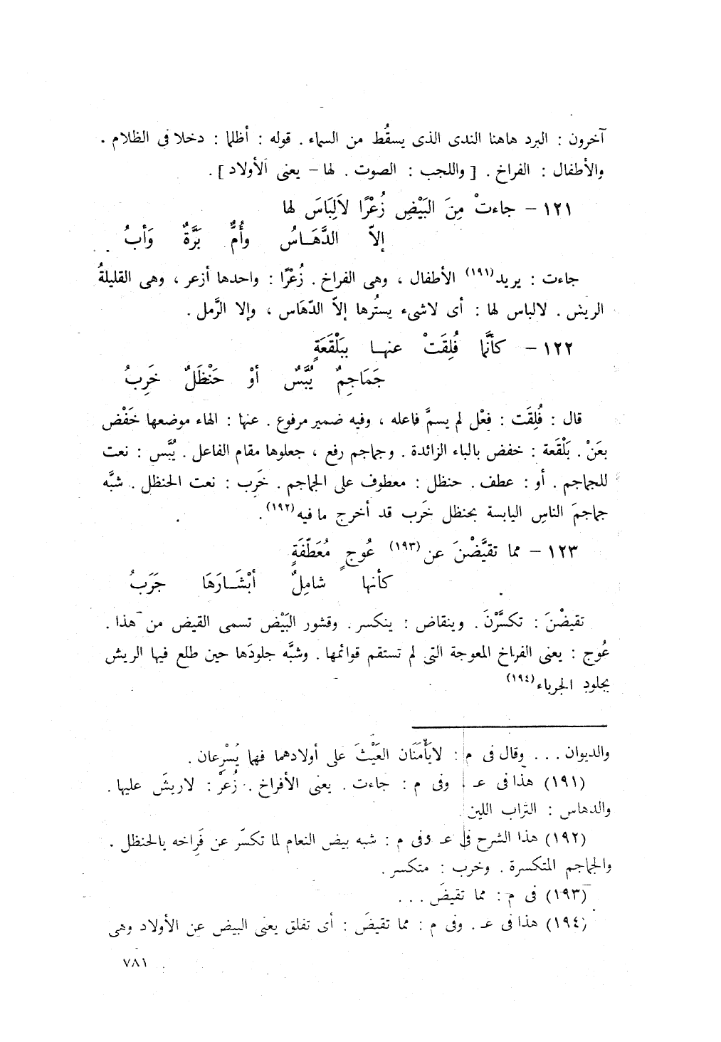 مِمّا تَقَيَّضَ عَنْ عُوجٍ مُعَطَّفَةٍ ... كَأَنّها شَامِلٌ أَبْشَارَها جَرَبُ