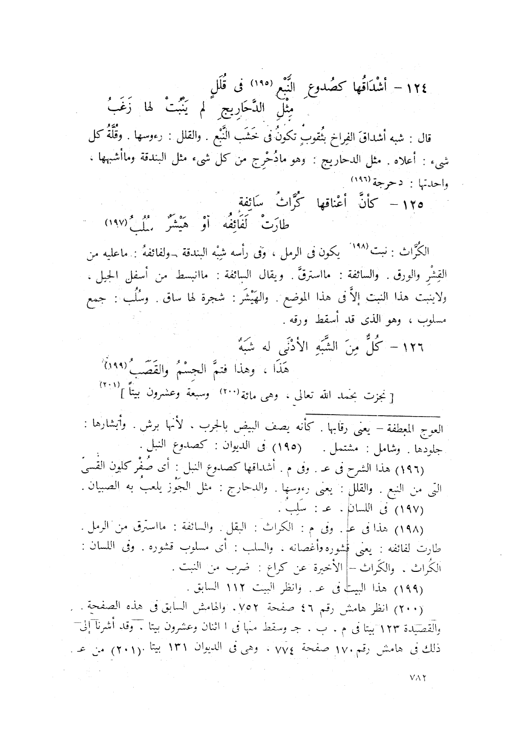 كَأَنّ أَعْنَاقَها كُرَّاثُ سَائِفَةٍ ... طَارَتْ لَفَائِفُهُ، أَوْ هَيشَرٌ سُلُبُ