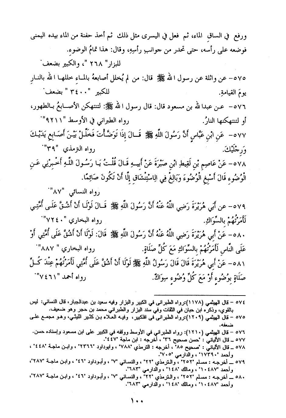 576 - ابن مسعود رفعه: ((لتنتهكن الأصابعُ بالطهور، أو لتنتهكنها النارُ)). للأوسط (¬2).