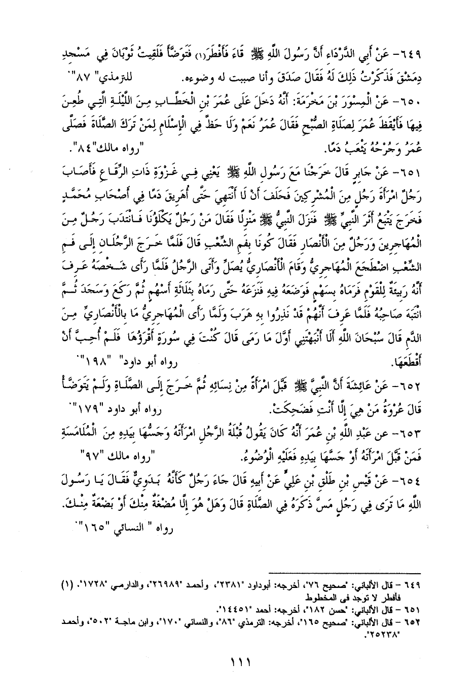 (¬1) «الموطأ» 1/ 65 وصححه الألباني في المشكاة (330).