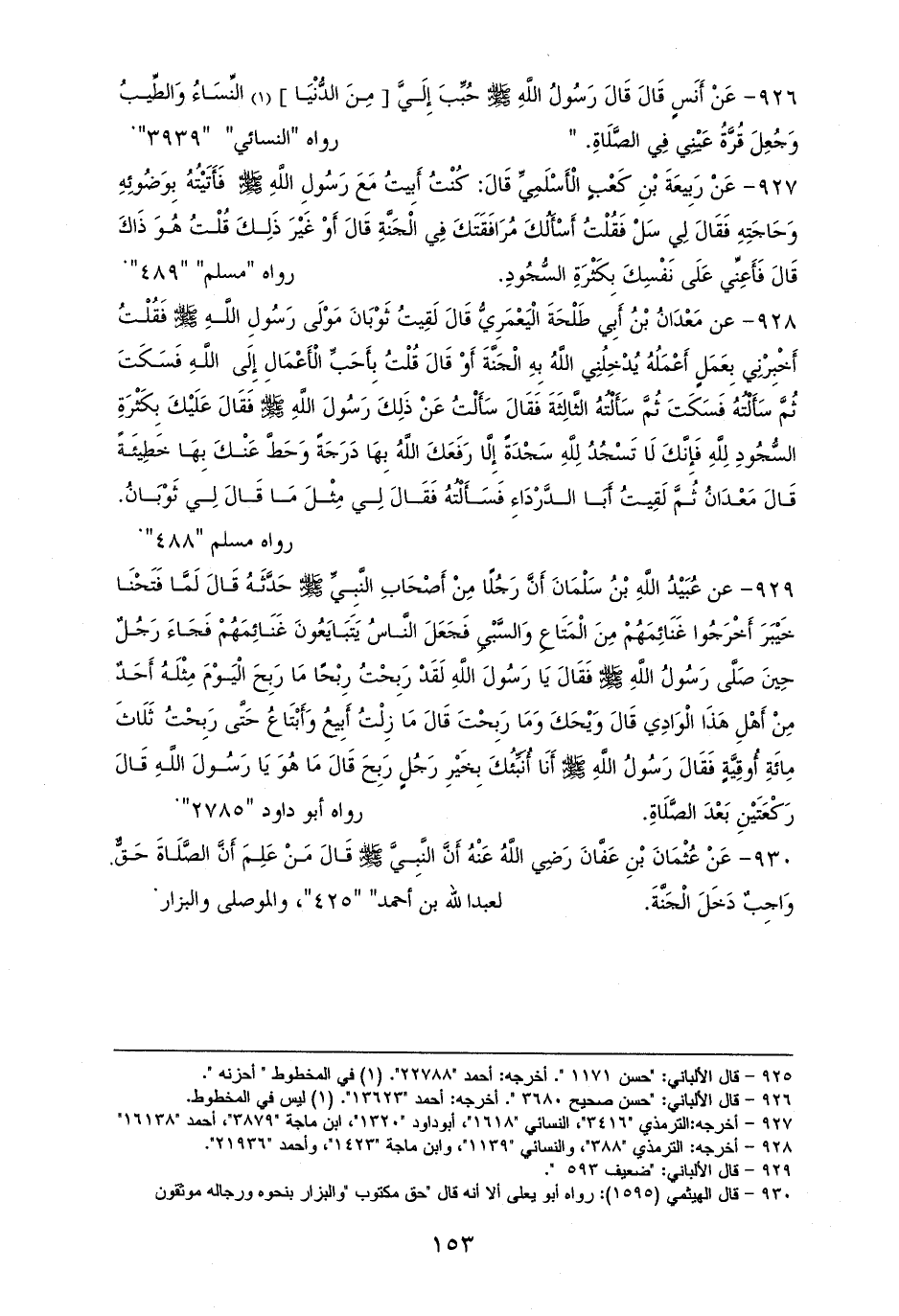 926 - أَنَسٍ رفعه: ((حُبِّبَ إِلَيَّ النِّسَاءُ وَالطِّيبُ، وَجُعِلَ قُرَّةُ عَيْنِي فِي الصَّلَاةِ)). للنسائي (¬1).