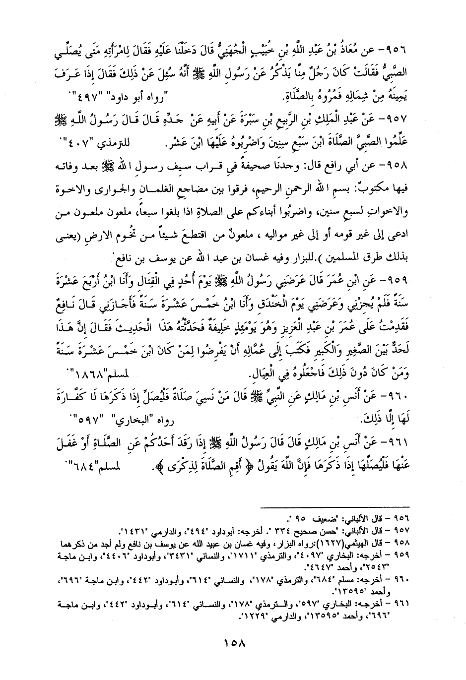 957 - وللترمذي: ((عَلِّمُوا الصَّبِيَّ الصَّلَاةَ ابْنَ سَبْعِ سِنِينَ وَاضْرِبُوهُ عَلَيْهَا ابْنَ عَشْر)) (¬1).