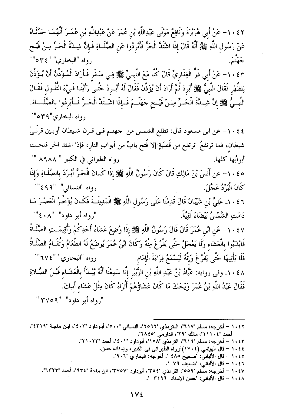 1042 - أبو هُرَيْرَةَ رفعه: ((إِذَا اشْتَدَّ الْحَرُّ فَأَبْرِدُوا بالصَّلَاةِ، فَإِنَّ شِدَّةَ الْحَرِّ مِنْ فَيْحِ جَهَنَّمَ)). للستة (¬1).