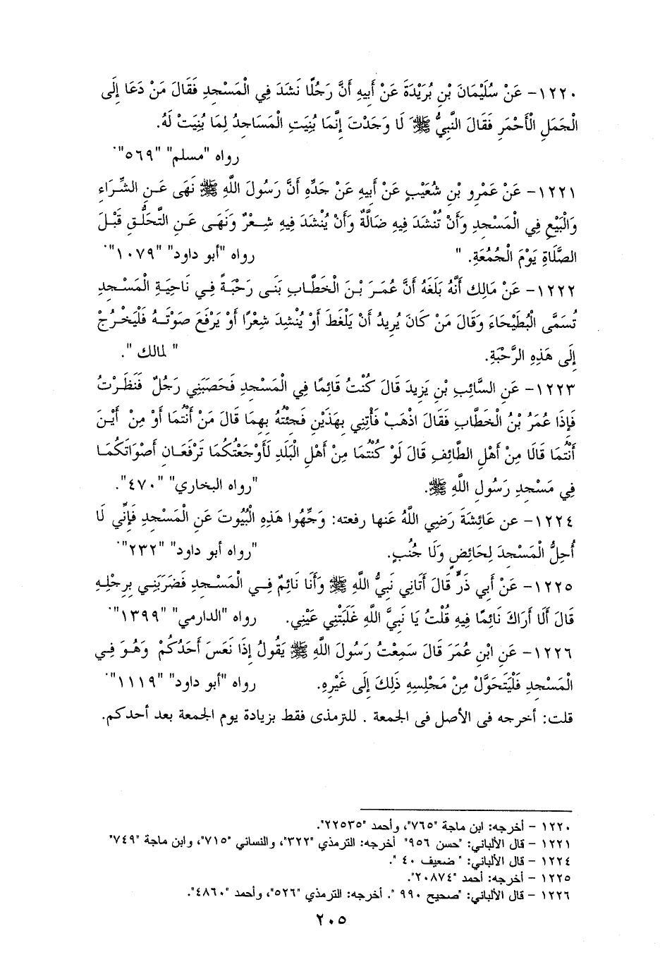1221 - عَمْرِو بْنِ شُعَيْبٍ عَنْ أَبِيهِ عَنْ جَدِّهِ: أَنَّ رَسولَ الله - صلى الله عليه وسلم - نَهَى عَنِ الشِّرَاءِ وَالْبَيْعِ فِي الْمَسًاجِدِ وَأَنْ تُنْشَدَ (فِيهِ) (¬1) ضَالَّةٌ، وَأَنْ يُنْشَدَ فِيهِ شِعْرٌ وَنَهَى عَنِ الَحِلقِ قَبْلَ الصَّلَاةِ يَوْمَ الْجُمُعَةِ. لأصحاب السنن (¬2).