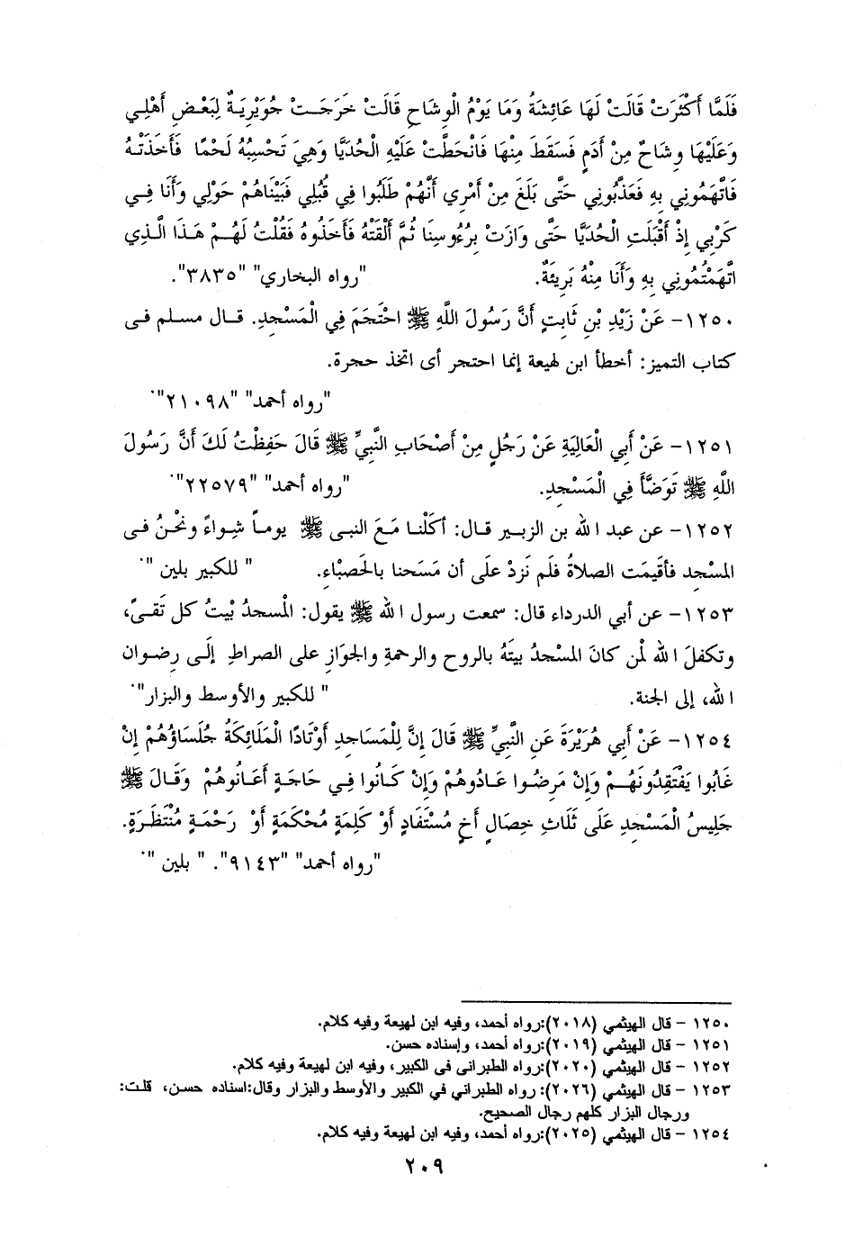 1250 - زَيْدُ بْنِ ثَابِت: أَنَّ النبي - صلى الله عليه وسلم - احْتَجَمَ فِي الْمَسْجِدِ. لأحمد قال مسلم في كتاب التمييز: أخطأ ابن لهيعة إنما هو احتجر أى اتخذ حجرة. لأحمد (¬1).