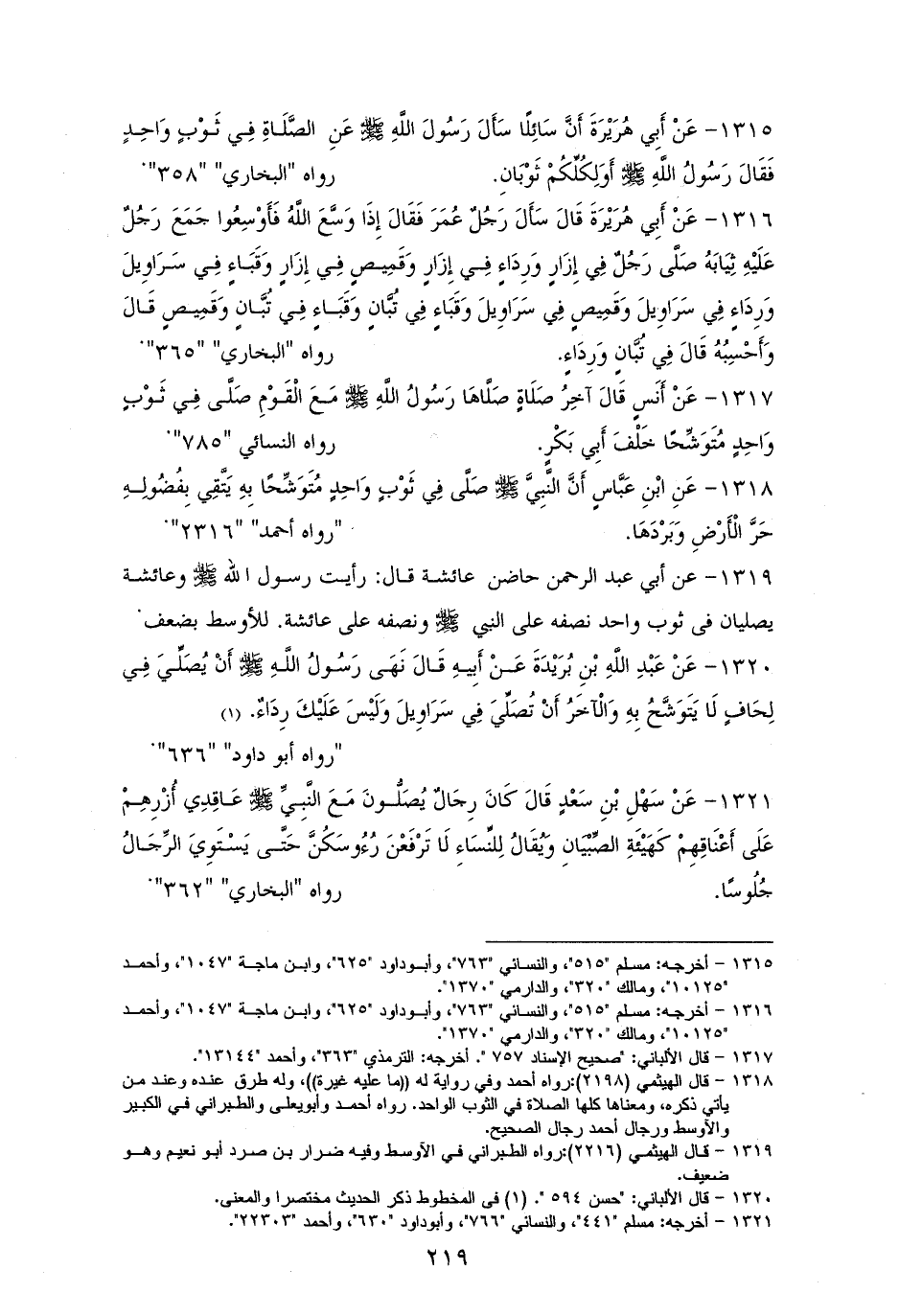 1315 - وعنه: أنه - صلى الله عليه وسلم - سُئِلَ عَنِ الصَّلَاةِ فِي ثَوْبٍ وَاحِدٍ فَقَالَ: أَوَلِكُلِّكُمْ ثَوْبَانِ (¬1). للستة إلا النسائيِّ.