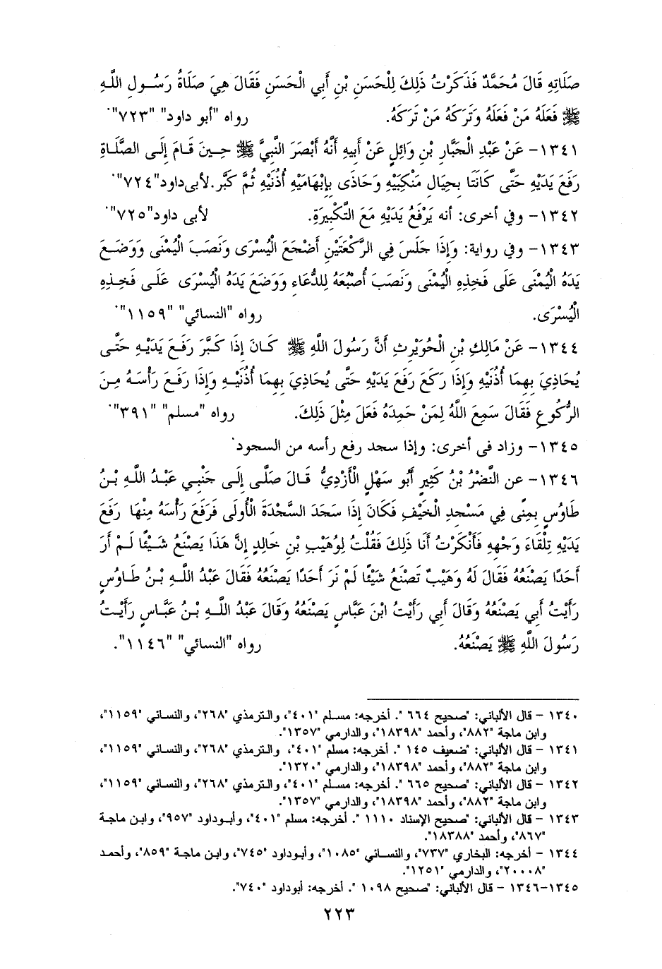 (¬1) رواه النسائي 2/ 205 - 206،قال الحافظ في «الفتح» 2/ 223: وأصح ما وقفت عليه من الأحاديث في الرفع في السجود ما رواه النسائي. . وساق الحديث اهـ، وصححه الألباني في «الإرواء» (351).