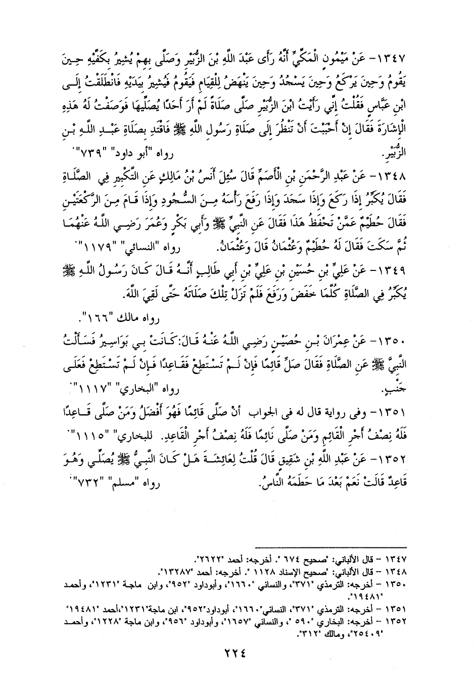 1349 - عَلِيِّ بْنِ الحُسَيْنِ بْنِ عَلِيِّ قَالَ: كَانَ رَسُولُ الله - صلى الله عليه وسلم - يُكَبِّرُ فِي الصَّلَاةِ كُلَّمَا خَفَضَ وَرَفَعَ، فَلَمْ تَزَلْ تِلْكَ صَلَاتَهُ - صلى الله عليه وسلم - حَتَّى لَقِيَ الله تعالى (¬1). لمالك.
