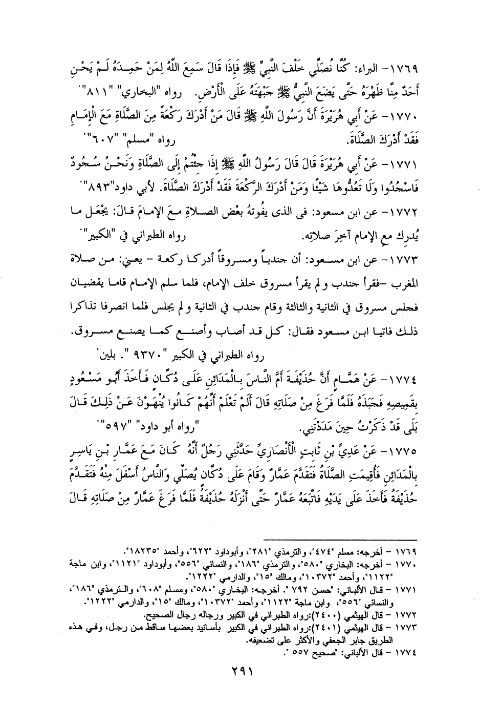 1771 - ولأبي داودَ: ((إِذَا جِئْتُمْ إِلَى الصَّلَاةِ وَنَحْنُ سُجُودٌ فَاسْجُدُوا، وَلَا تَعُدُّوهَا شَيْئًا، وَمَنْ أَدْرَكَ ركْعَةً فَقَدْ أَدْرَكَ الصَّلَاةَ)). و ((للموطأ)) نحو ذلكَ موقوفًا (¬1).