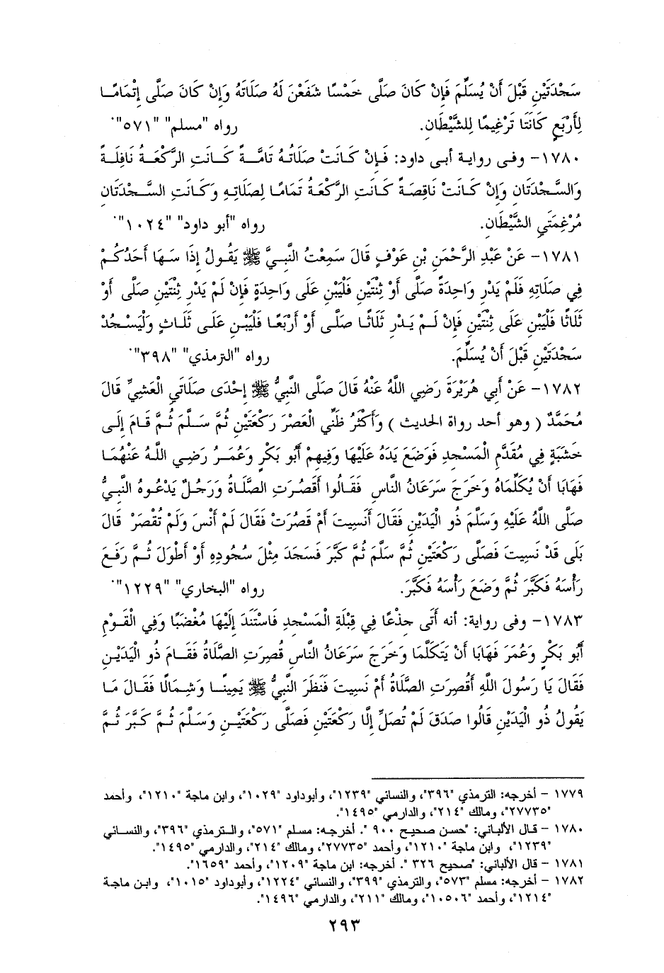 1781 - عَبْدُ الرَّحْمَنِ بْنُ عَوْفٍ رفعه: ((إِذَا سَهَا أَحَدُكُمْ فِي صَلَاتِهِ فَلَمْ يَدْرِ وَاحِدَةً صَلَّى أَوْ ثِنْتَيْنِ، فَلْيَبْنِ عَلَى وَاحِدَةٍ، فَإِنْ لَمْ يَدْرِ ثِنْتَيْنِ صَلَّى أَوْ ثَلَاثًا فَلْيَبْنِ عَلَى ثِنْتَيْنِ، فَإِنْ لَمْ يَدْرِ ثَلَاثًا صَلَّى أَوْ أَرْبَعًا فَلْيَبْنِ عَلَى ثَلَاثٍ، وَلْيَسْجُدْ سَجْدَتَيْنِ قَبْلَ أَنْ يُسَلِّمَ)). للترمذيِّ (¬1).