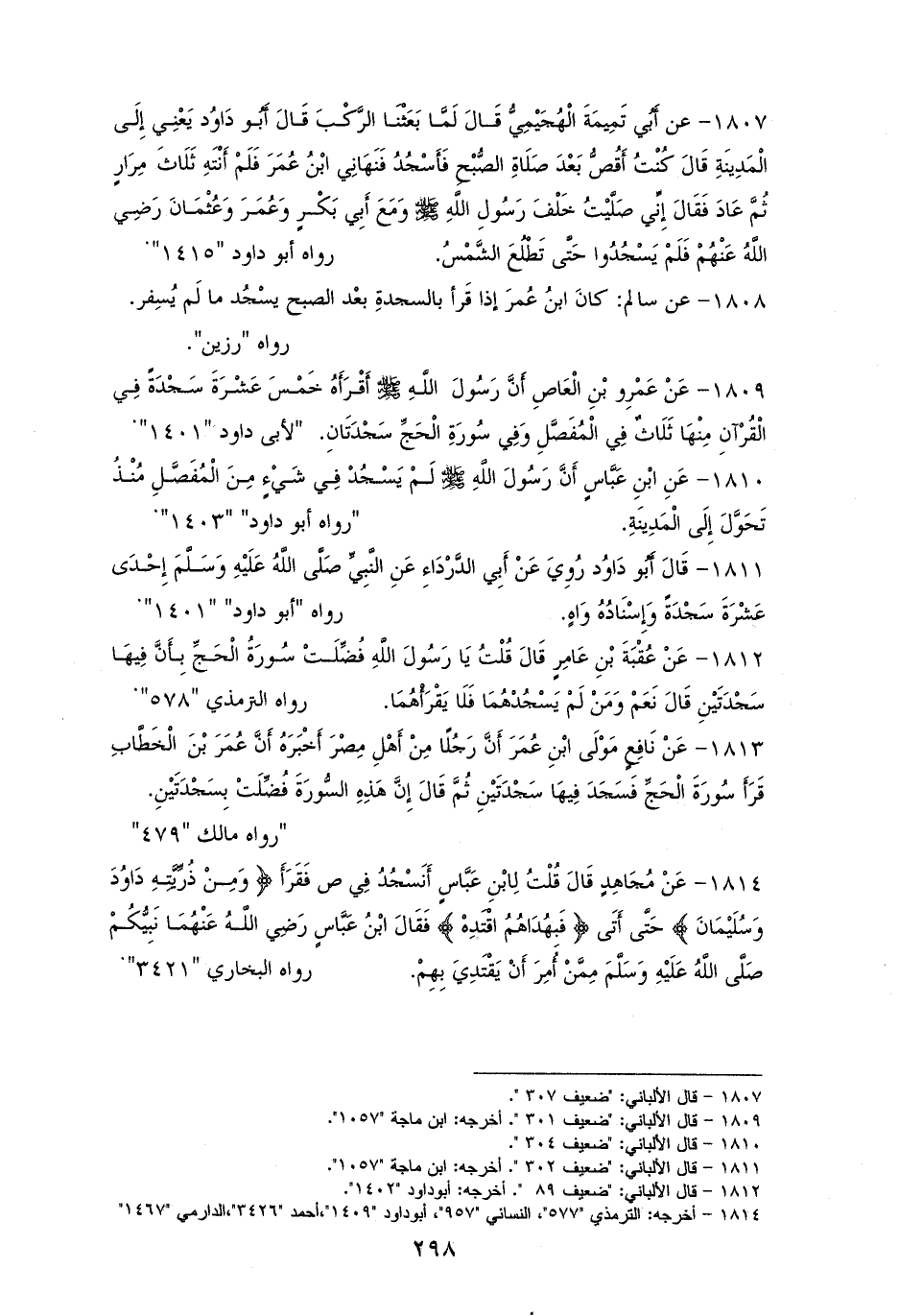 1808 - سالمُ: كانَ ابنُ عُمرَ إِذَا قَرأ بالسجدةِ بعْد الصبح يسْجُد ما لَم يُسِفرْ. لرزين (¬1).