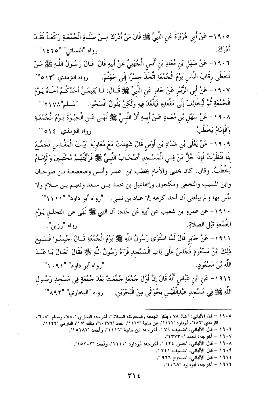 1910 - عمرُو بنُ شعيب عن أبيهِ عَن جَدهِ: أن النبي - صلى الله عليه وسلم - نَهَى عن التحلقِ يَوْم الجُمُعةِ قبْل الصلاةِ. لرزين (¬1).
