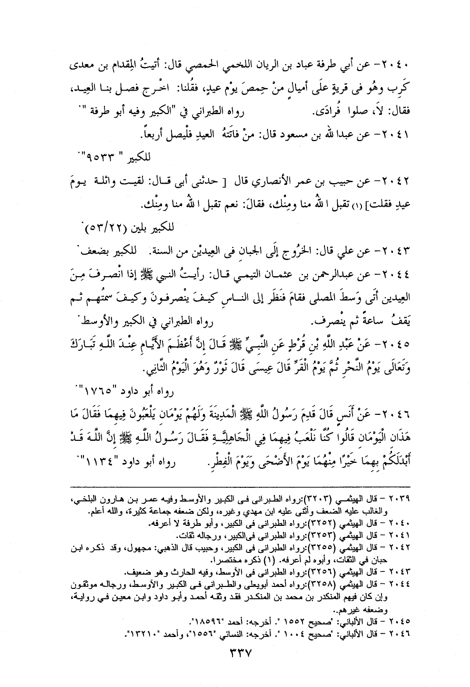 2041 - ابنُ مسعودٍ قال: مَنْ فاتَتهُ صلاةُ العيدِ فلْيصلِّ أربعاً. ((للكبير)) (¬1).