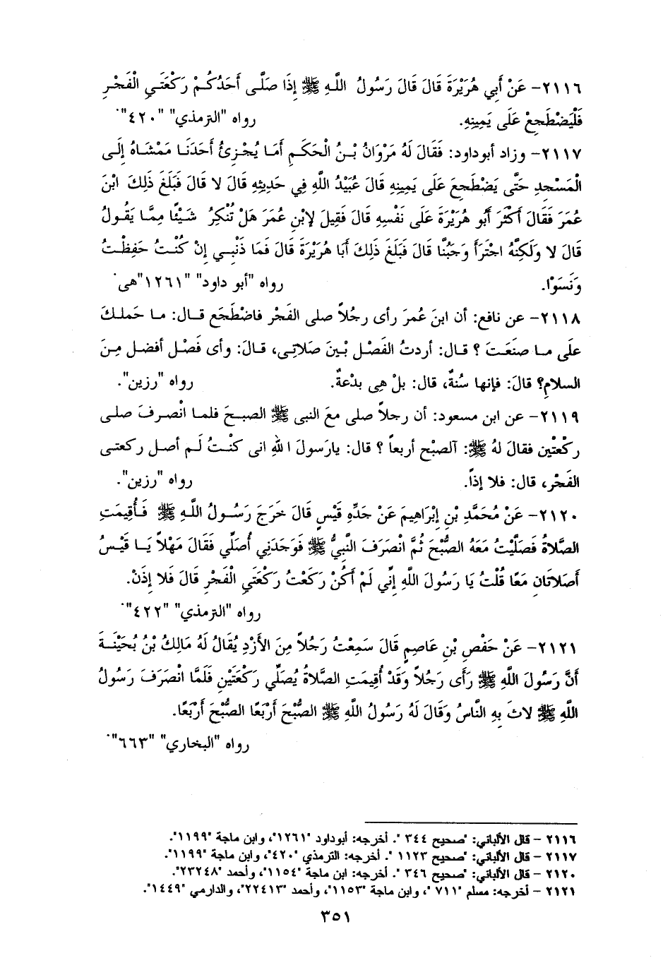 2116 - أَبو هُرَيْرَة رفعه: ((إِذَا صَلَّى أَحَدُكُم الرَّكْعَتَيْنِ قَبْلَ الصُّبحِ فَليْضْطَجِعْ عَلَى يَميِنِه)). للترمذي (¬1).