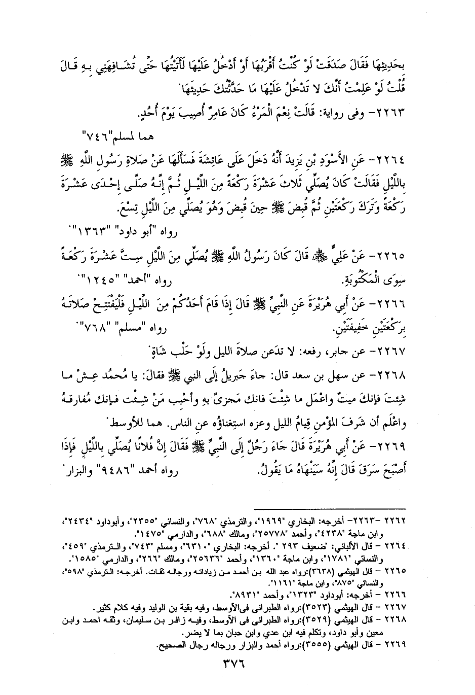 2265 - عليٌّ: كان رسولُ الله - صلى الله عليه وسلم - يُصلِّي من اللَّيل ستَّ عشرةَ ركعة سوى المكتوبة. لعبد الله بن أحمد (¬1).