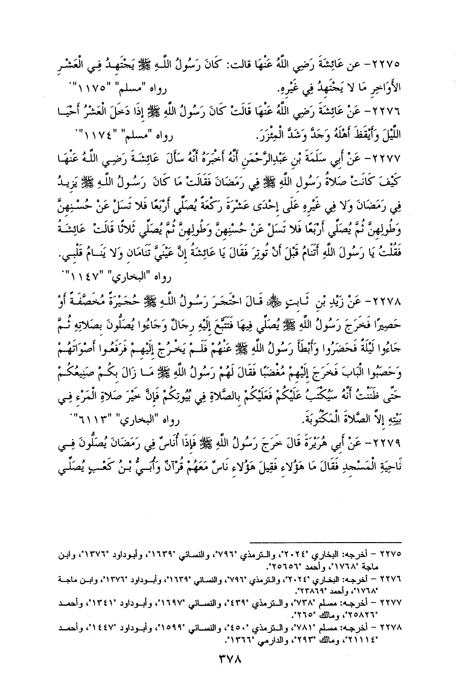 2275 - عائشةُ: كانَ رسُول الله يجتهد في رمضان ما لا يجتهد في غيره، وفي العشر الآخر منه ما لا يجتهدُ في غيره (¬1).
