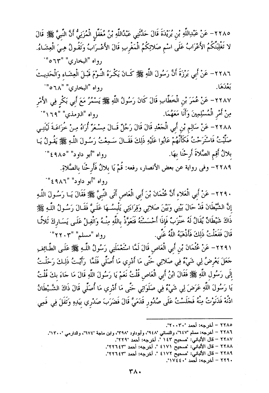 2286 - أبو برزة: كان النبي - صلى الله عليه وسلم - ينهى عن النوم قبل العشاءِ والحديث بعدها. للشيخين والترمذي وأبي داود بلفظه (¬1).