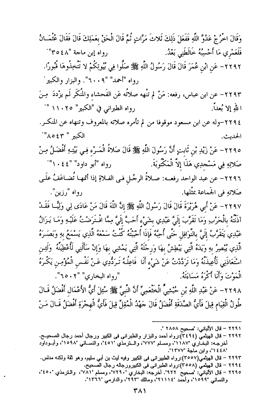 2295 - زيدُ بنُ ثابتٍ رفعه: ((صلاةُ المرء في بيته أفضل من صلاته في مسجدي هذا، إلا المكتوبة)). لأبي داود، والترمذي (¬1).