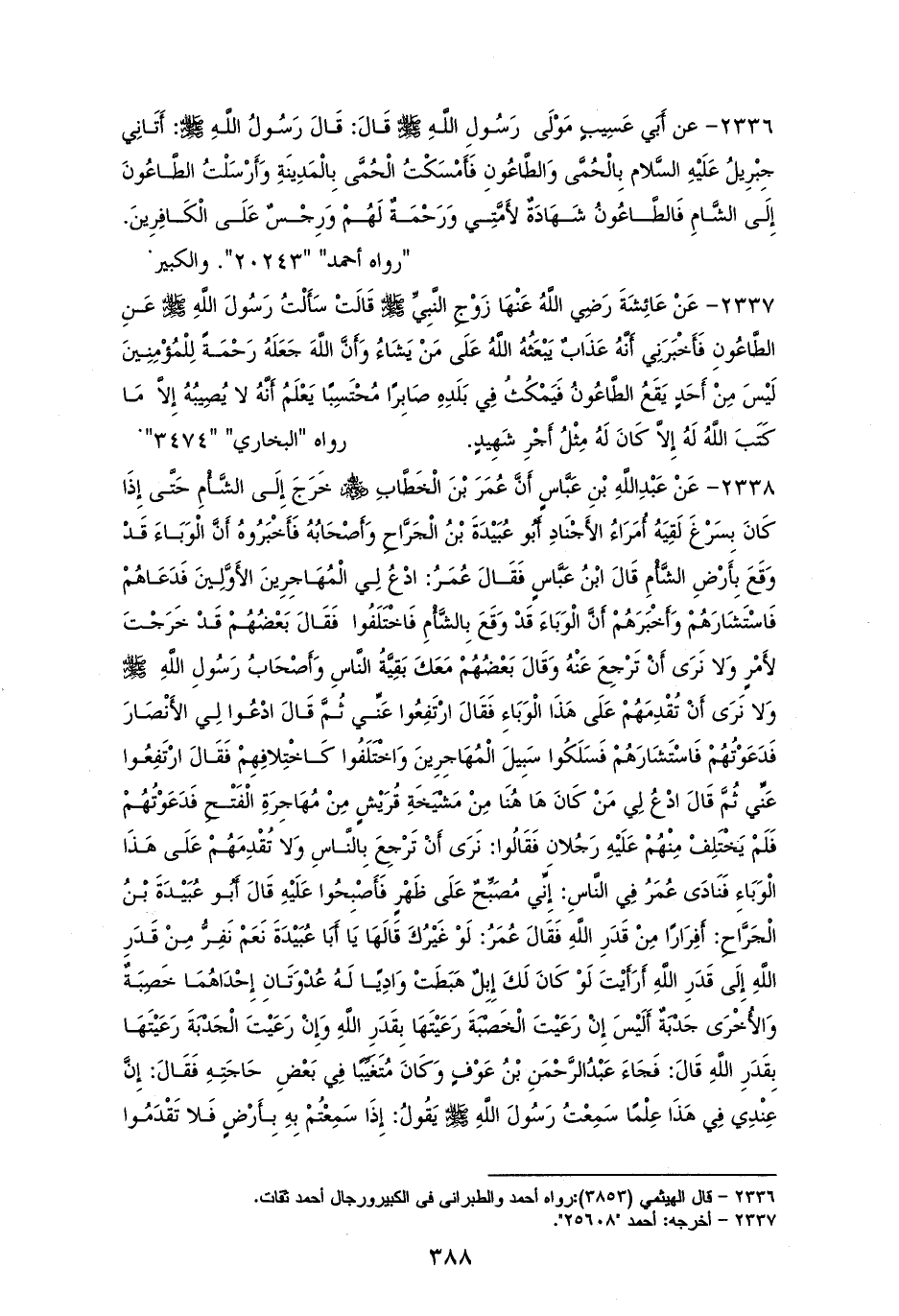 2336 - أبو عبيد مولى رسول الله - صلى الله عليه وسلم - رفعه: ((أتاني جبريل بالحمَّى والطَّاعُون فأمسكتُ الحمَّى بالمدينة وأرسلت الطاعُون إلى الشام فالطاعون شهادة لأمتي ورحمةٌ لهم ورجسٌ على الكفار)). لأحمد، و ((الكبير)) (¬1).