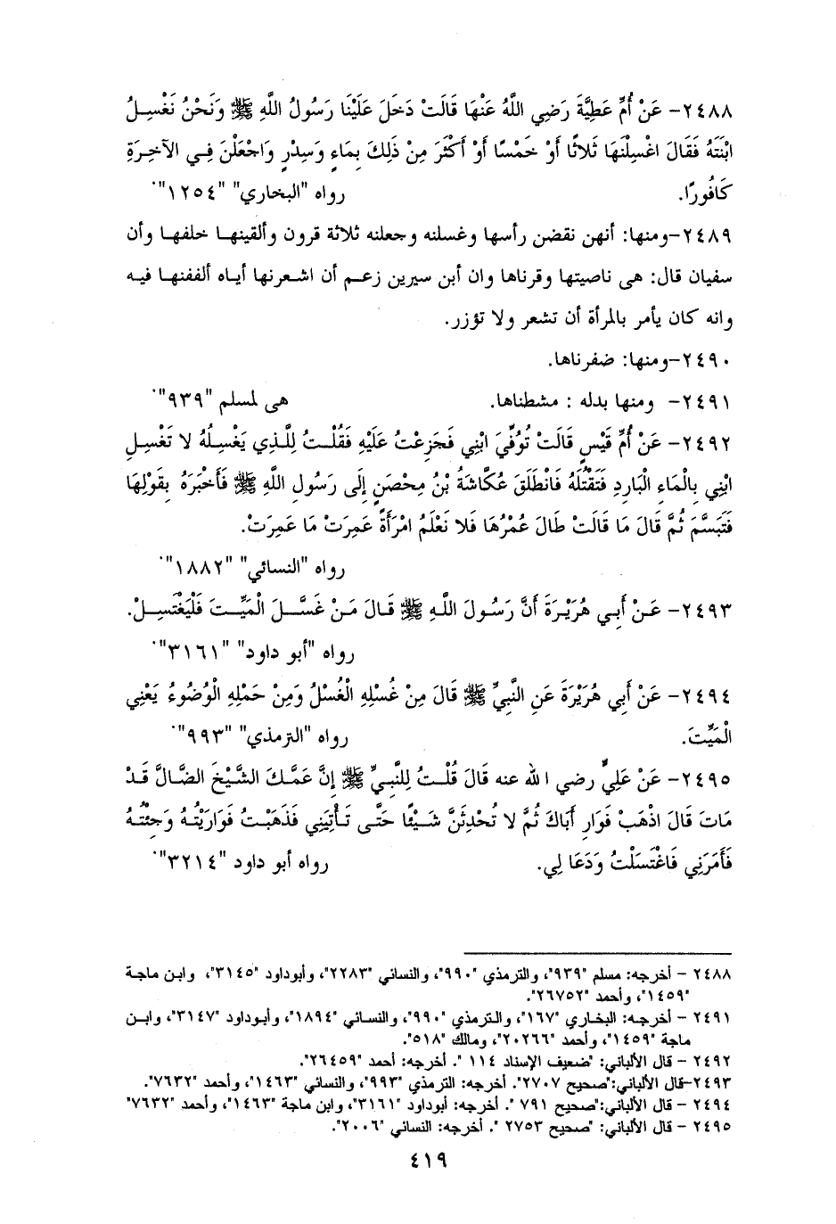 2493 - أبو هريرة رفعه: ((من غسل الميِّت فليغتسل)). لأبي داود (¬1).