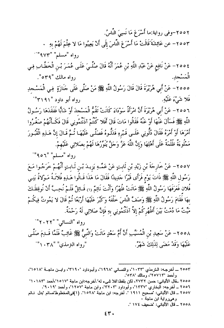 2555 - أَبو هُرَيْرَةَ رفعه: ((مَنْ صَلَّى عَلَى جَنَازَةٍ فِي الْمَسْجِدِ فَلا شَيْءَ له)). وفي نسخة: ((فلا شيء عليه)). لأبي داود (¬1).