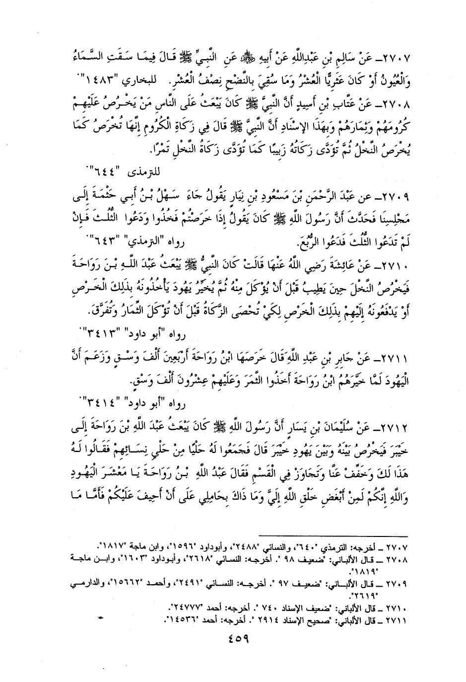 2709 - سَهْلُ بْنُ أَبِي حَثْمَةَ رفعه: ((إِذَا خَرَصْتُمْ فَخُذُوا وَدَعُوا، دعوا الثُّلُثَ، فَإِنْ لَمْ تَدَعُوا الثُّلُثَ فَدَعُوا الرُّبُعَ)). لأصحاب السنن (¬1).