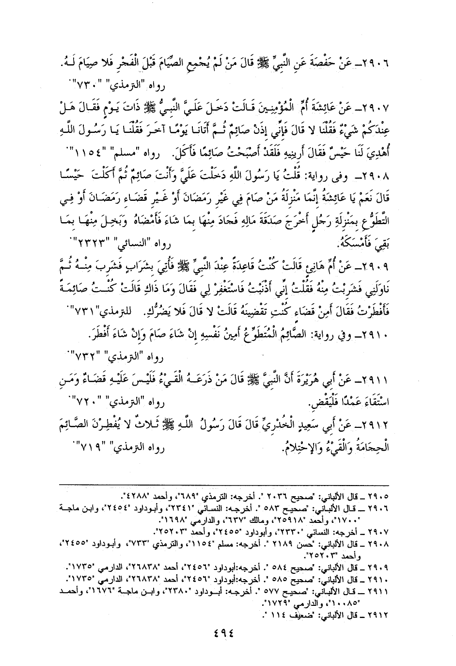 2906 - حَفْصَةُ رفعته: ((مَنْ لَمْ يُجْمِعِ الصِّيَامَ قَبْلَ الْفَجْرِ فَلا صِيَامَ لَهُ)). لأصحابِ السننِ (¬1).