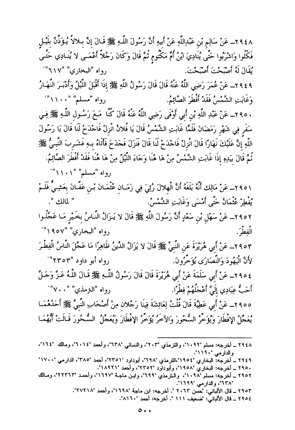 2952 - سَهْلُ بْنِ سَعْدٍ رفعه: ((لا يَزَالُ النَّاسُ بِخَيْرٍ مَا عَجَّلُوا الْفِطْرَ)). للشيخين و ((الموطأ)) والترمذي (¬1).