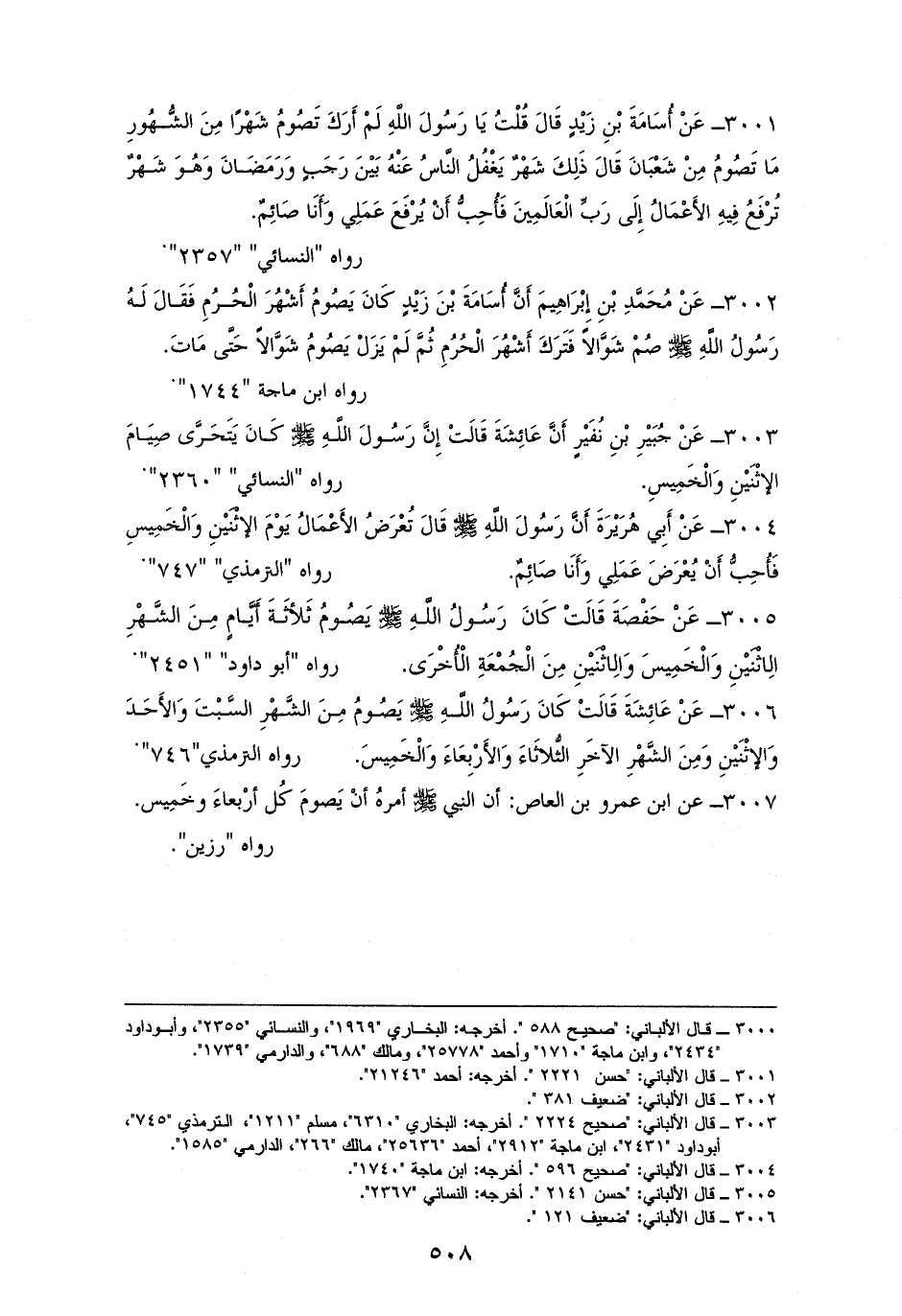 3003 - عَائِشَةُ: إِنَّ رَسُولَ اللَّهِ - صلى الله عليه وسلم - كَانَ يَتَحَرَّى صِيَامَ الاثْنَيْنِ وَالْخَمِيسِ. للترمذي والنسائي (¬1).