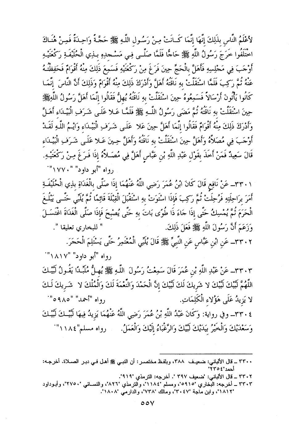 3304 - وفي رواية: وَكَانَ ابْنُ عُمَرَ يَزِيدُ فِيهَا: لَبَّيْكَ لَبَّيْكَ وَسَعْدَيْكَ وَالْخَيْرُ بِيَدَيْكَ، لَبَّيْكَ وَالرَّغْبَاءُ إِلَيْكَ وَالْعَمَلُ (¬1).