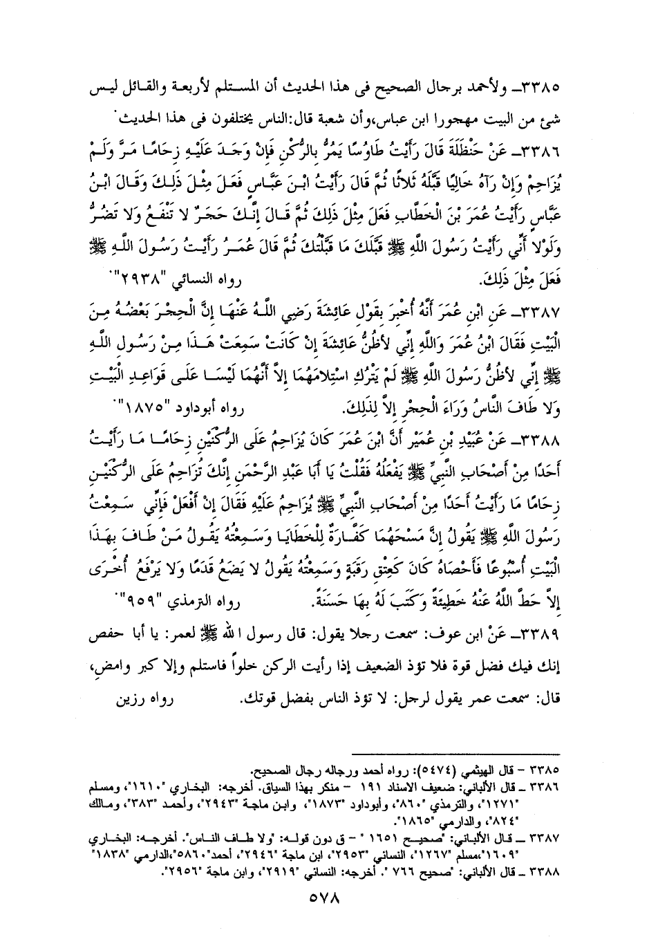 3385 - ولأحمد برجال الصحيح في هذا الحديث المستلم لأربعة والقائل: ليس شيء من البيت مهجورا. ابن عباس، وإن شعبة قال: الناس يختلفون في هذا الحديث (¬1).