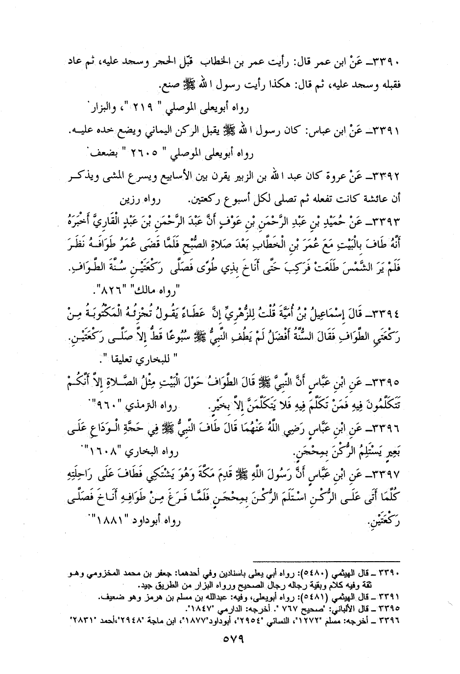 3395 - ابْنُ عَبَّاسٍ رفعه: ((الطَّوَافُ حَوْلَ الْبَيْتِ مِثْلُ الصَّلاةِ إِلاَّ أَنَّكُمْ تَتَكَلَّمُونَ فِيهِ فَمَنْ تَكَلَّمَ فِيهِ فَلا يَتَكَلَّم إِلاَّ بِخَيْرٍ)). للترمذي (¬1).