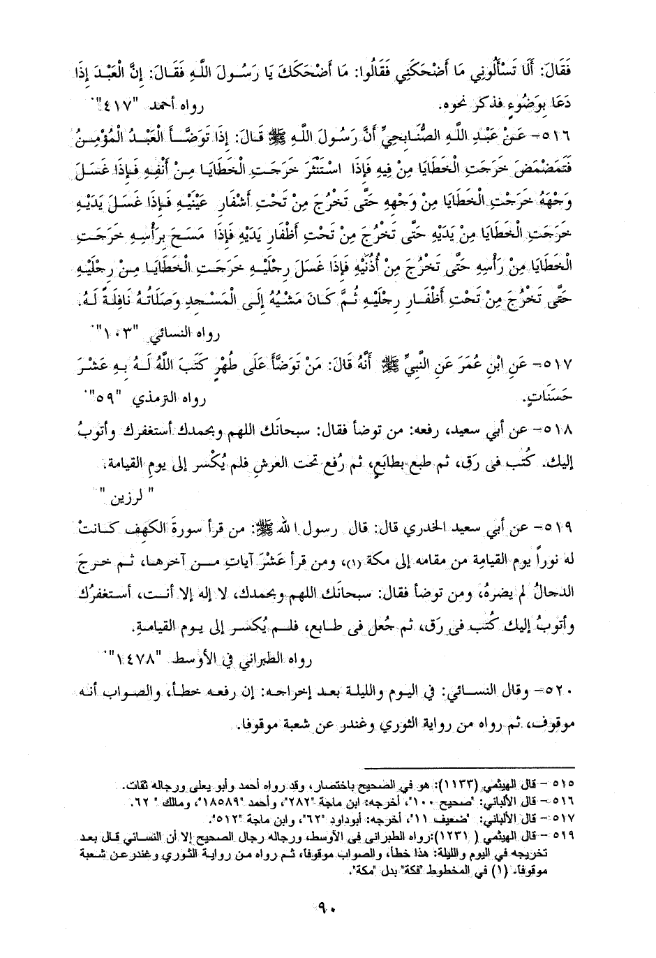 517 - ابْنِ عُمَرَ رفعه: ((مَنْ تَوَضَّأَ عَلَى طُهْرٍ كَتَبَ الله لَهُ بِهِ عَشْرَ حَسَنَاتٍ)). للترمذي (¬1).