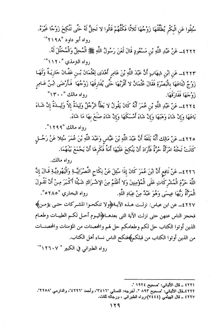 4222 - ابْنُ مَسْعُودٍ: أن النبي - صلى الله عليه وسلم - لعن المُحَلِّلَ وَالْمُحَلَّلَ لَهُ. للترمذي والنسائي (¬1).