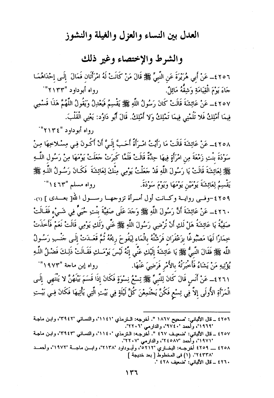 العدل بين النساء والعزل والغيلة والنشوز والشرط والاختصاء وغير ذلك
