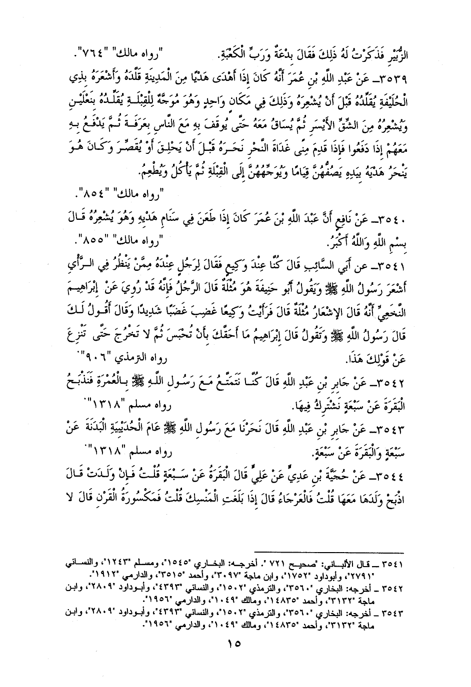 3540 - وفي رواية: إِذَا طَعَنَ فِي سَنَامِ هَدْيِهِ -وَهُوَ يُشْعِرُهُ- قَالَ: ((بِسْمِ الله وَالله أَكْبَرُ)). لمالك (¬1).
