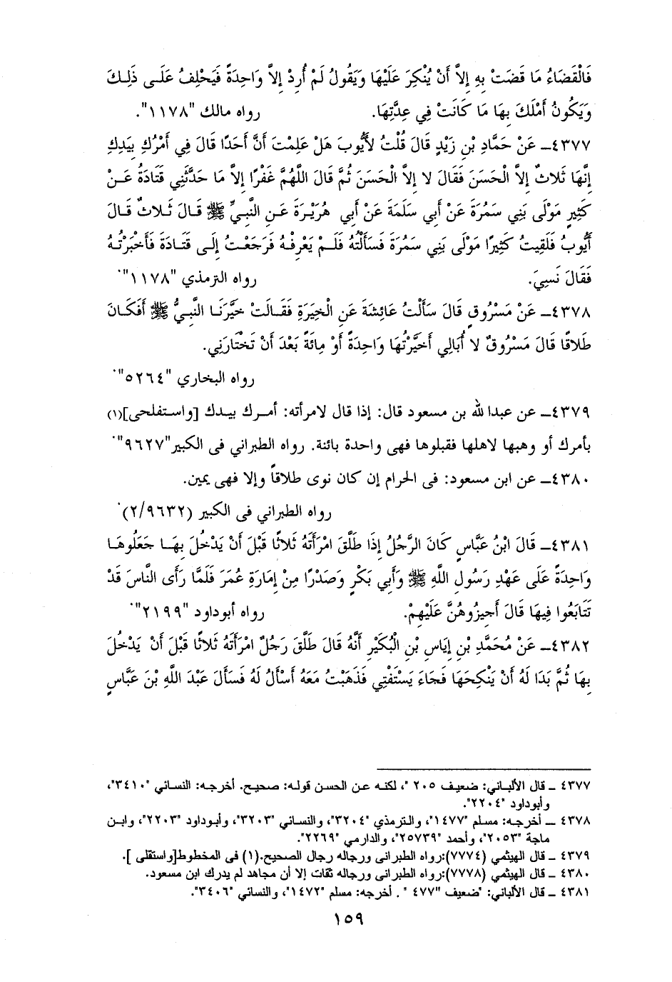 4378 - مسروق: ما أبالي خيرت امرأتي واحدة أو مائة، أو ألفا بعد أن تختارني ولقد سألت عائشة فقالت: خيرنا رسول الله - صلى الله عليه وسلم - فاخترنا فكان طلاقا. للستة إلا مالكًا (¬1).