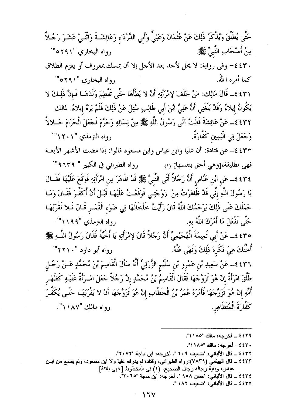 4431 - مَالِكٌ: مَنْ حَلَفَ لإمْرَأَتِهِ أَنْ لا يَطَأَهَا حَتَّى تَفْطِمَ وَلَدَهَا فَإِنَّ ذَلِكَ لا يَكُونُ إِيلاءً، بَلَغَنِي أَنَّ عليًّا سُئِلَ عَنْ ذَلِكَ فَلَمْ يَرَهُ إِيلاءً (¬1).