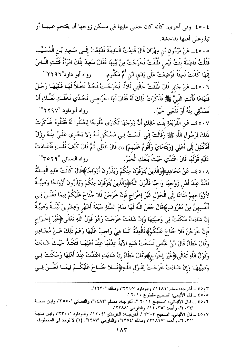 -[184]- أَنْفُسِهِنَّ} ثُمَّ جَاءَ الْمِيرَاثُ فَنَسَخَ السُّكْنَى فَتَعْتَدُّ حَيْثُ شَاءَتْ وَلا سُكْنَى لَهَا. للبخاري وأبي داود والنسائي (¬1).