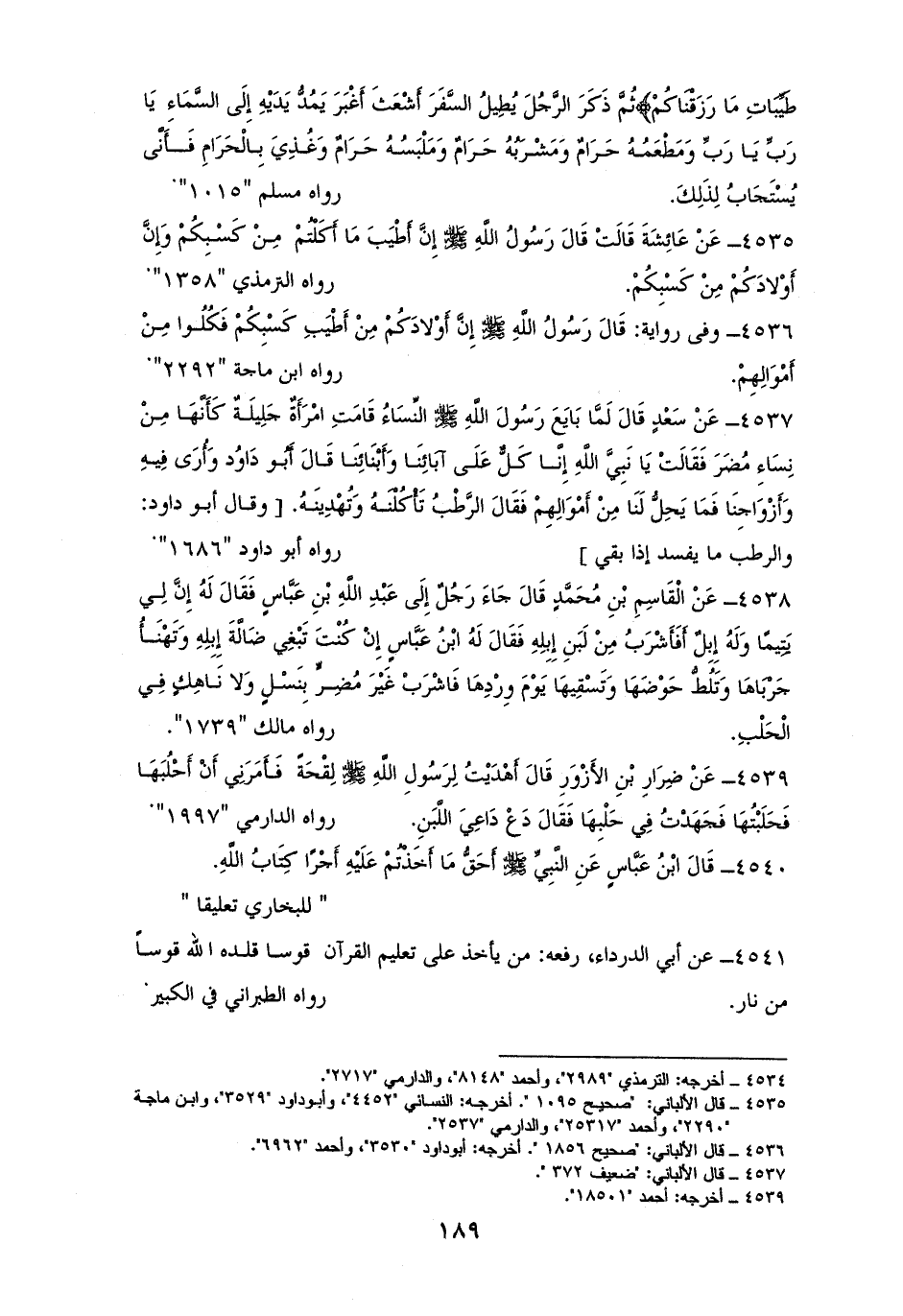 4536 - وفى رواية: ((ولدُ الرجل من كسبه، من أطيب كسبه، فكلوا من أموالهم)). لأصحاب السنن (¬1).