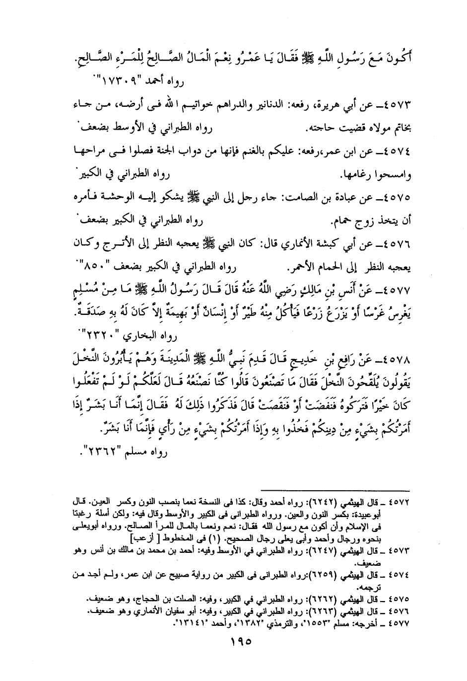 4574 - ابنُ عمر رفعه: ((عليكم بالغنم فإنها من دوابِّ الجنة فصلوا في مراحها وامسحوا رغامها)). للكبير (¬1).