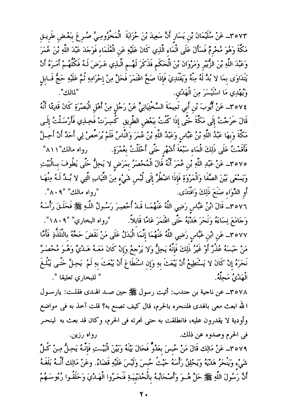 -[21]- وحلوا من كل شيء قبل الطواف بالبيت، وقبل أن يصل ما أرسل من الهدايا إلى البيت، ثم لم يصح أنه أمر أحدًا أن يقضي شيئًا ولا يعود له. «للموطأ»، والبخاري في ترجمته (¬1).