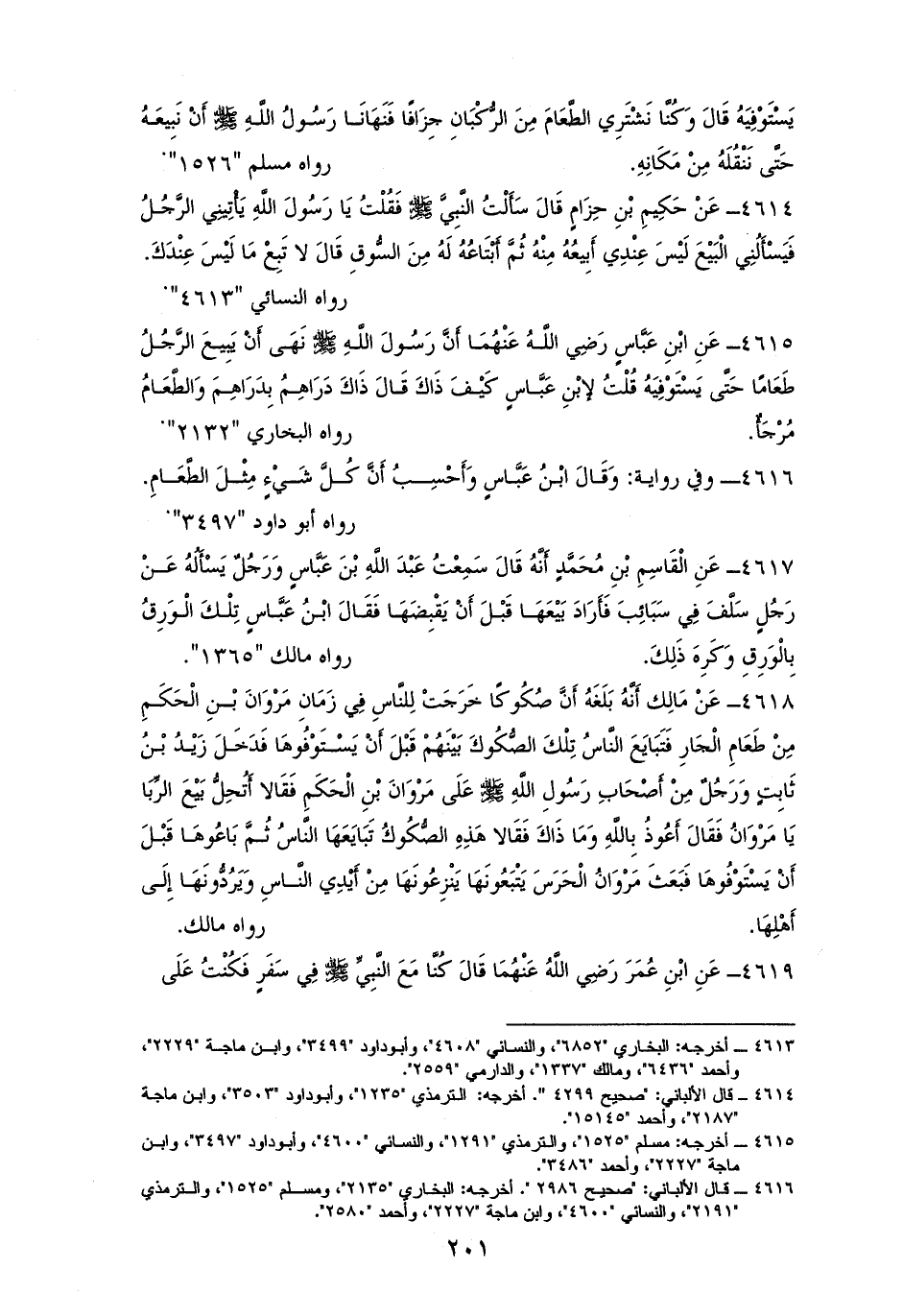 4616 - وفي رواية: قَالَ: ولا أَحْسِبُ كُلَّ شَيْءٍ إلا مِثْلَ الطَّعَامِ. للستة إلا مالكًا (¬1).