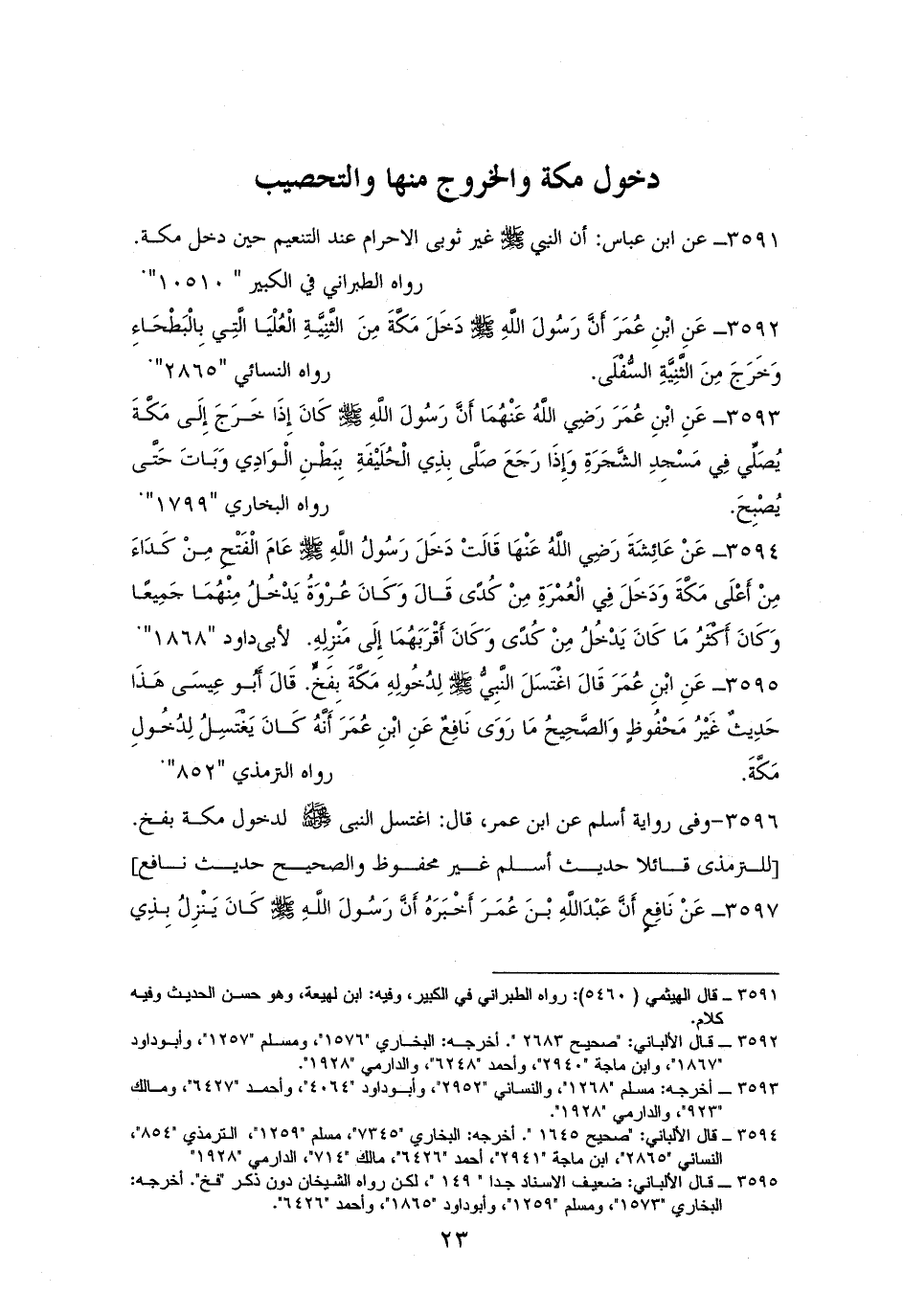 3591 - ابنُ عباس: أن النبي - صلى الله عليه وسلم - غير ثوبي الإحرام عند التنعيم حين دخل مكة. «للكبير» (¬1)