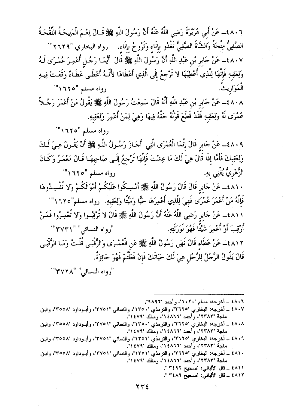 4811 - وفي أخرى: لا تُرْقِبُوا وَلا تُعْمِرُوا فَمَنْ أُرْقِبَ أَوْ أُعْمِرَه فَهي لَوَرَثَتِهِ. رواه النسائي (¬1).