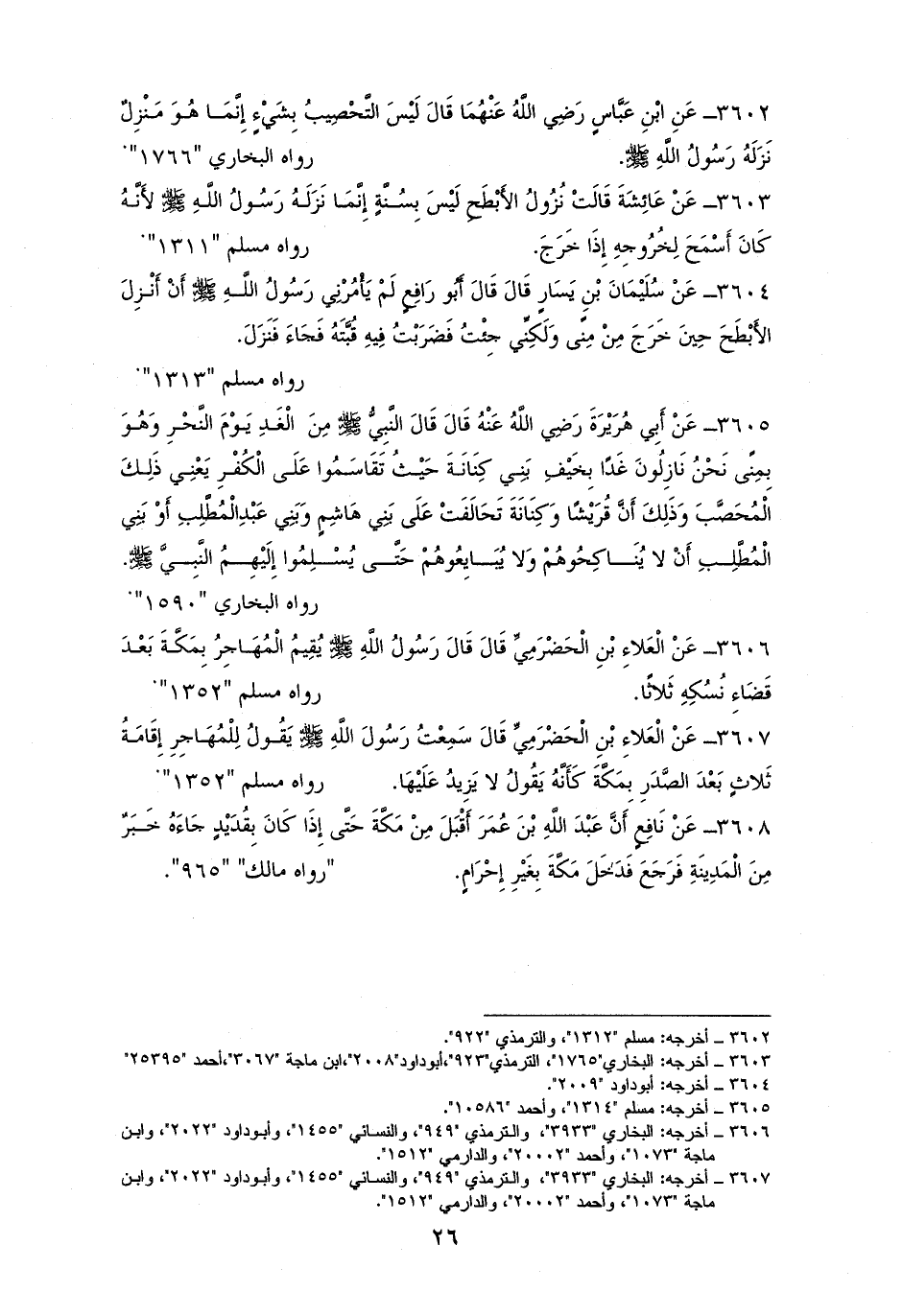 3606 - الْعَلاءِ بْنِ الْحَضْرَمِيِّ رفعه: ((يُقِيمُ الْمُهَاجِرُ بِمَكَّةَ بَعْدَ قَضَاءِ نُسُكِهِ ثَلاثًا)).